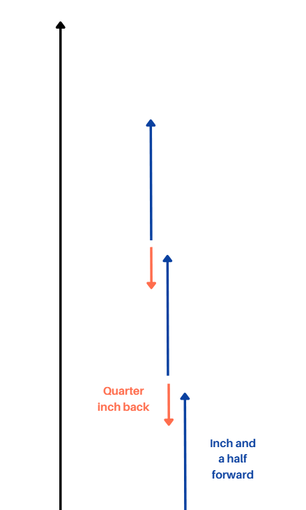 Move the device forward about an inch and a half and then a quarter inch back, repeating this process